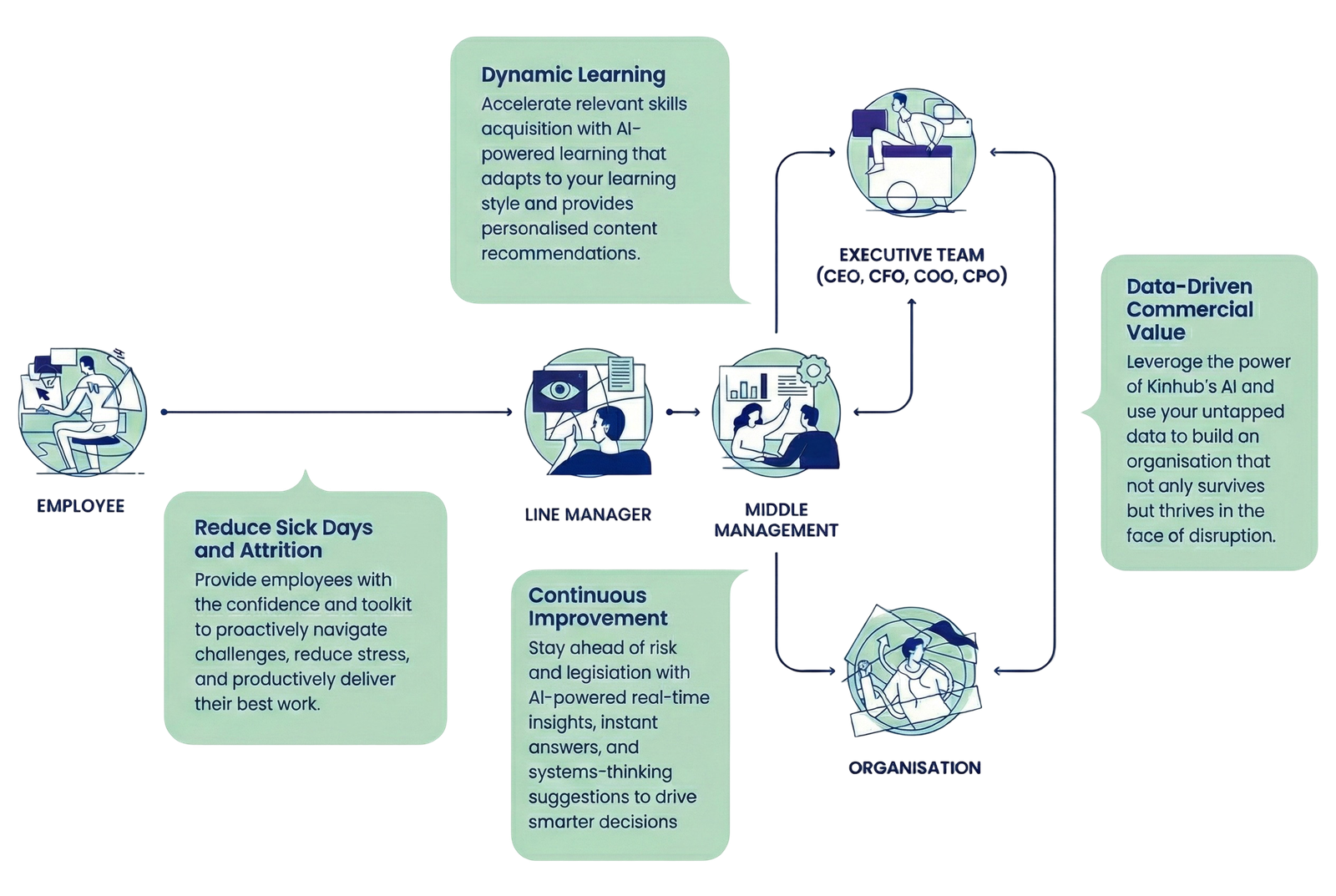 Kinhub delivers personalised, Human-augmented AI learning and coaching that helps your teams act decisively, develop continuously, and perform at their peak.